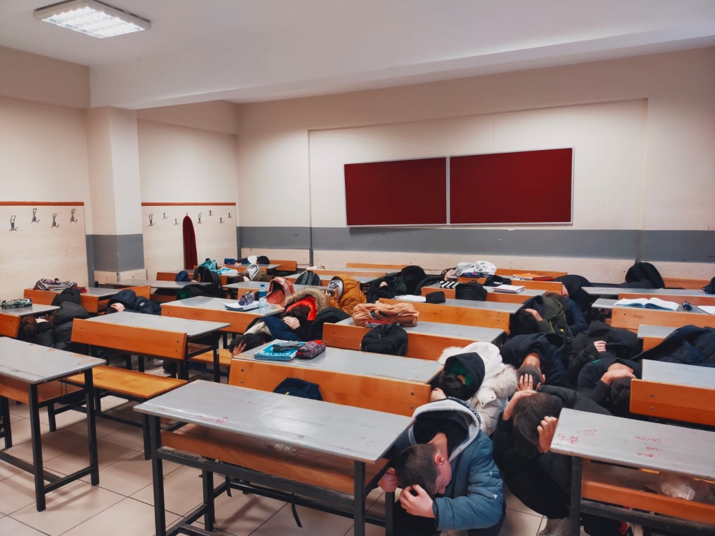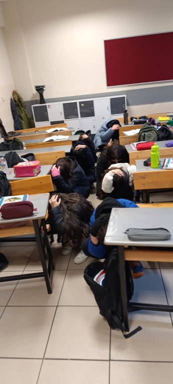 6 Şubat 2023 tarihinde 11 ilimizi etkileyen Kahramanmaraş merkezli depremlerin yıl dönümünde, acı tecrübeleri tekrar yaşamamak ve öğrencilerde afet farkındalık seviyesini artırmak amacıyla ülke genelinde eş zamanlı deprem tatbikatı yapıldı. Okulumuzda ilk ders deprem ile ilgili video izlendi. Saat 10:00'da deprem tatbikatı yapıldı.